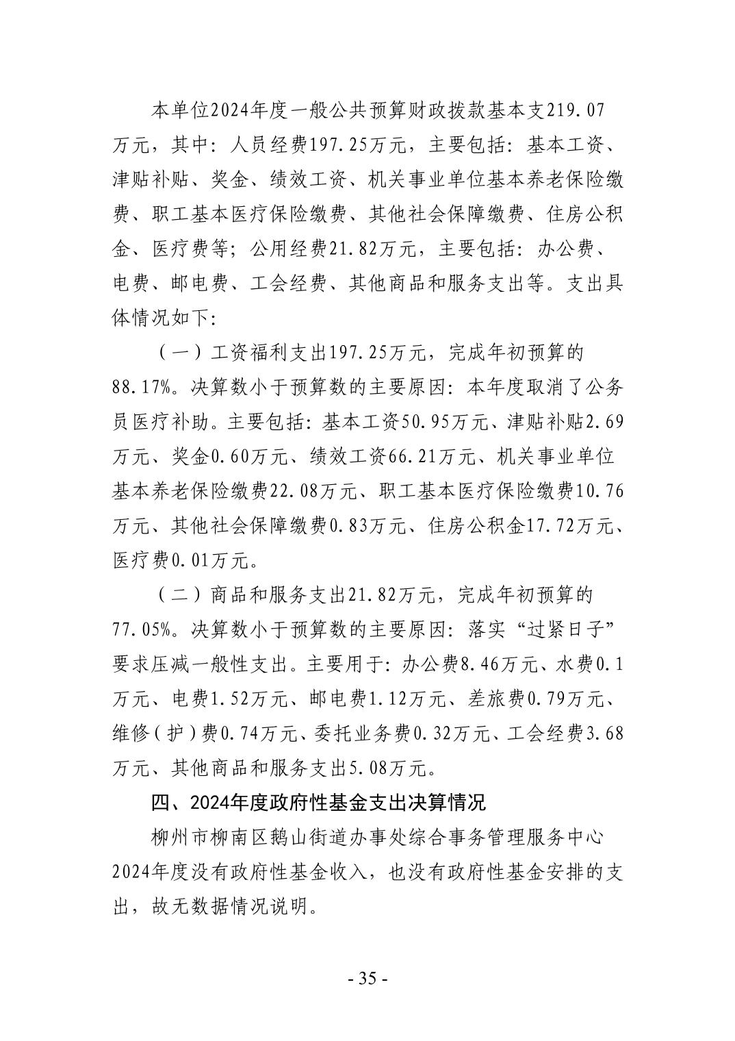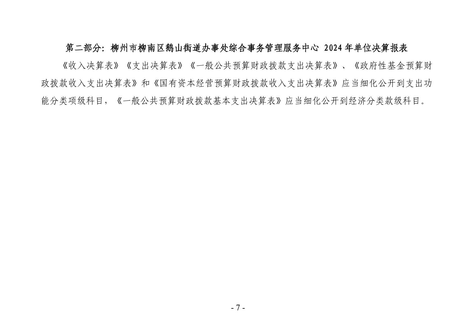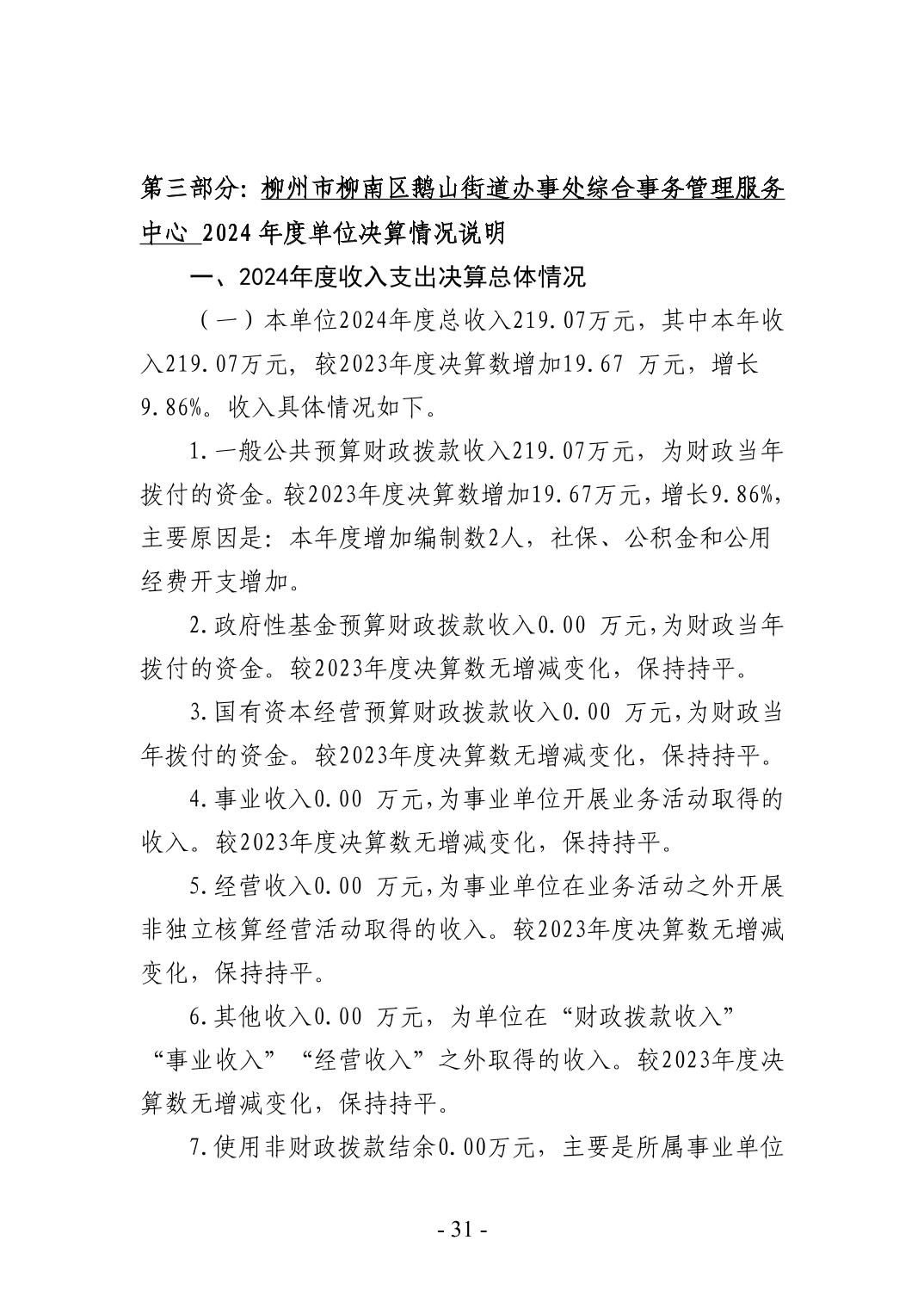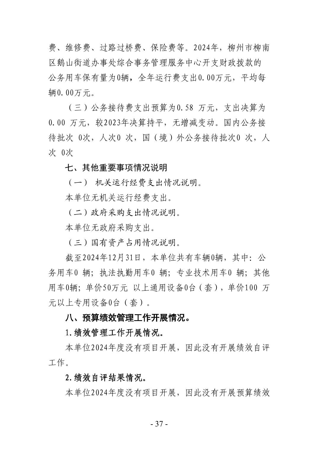 柳州市柳南區(qū)鵝山街道辦事處綜合事務管理服務中心2024年度單位決算公開
