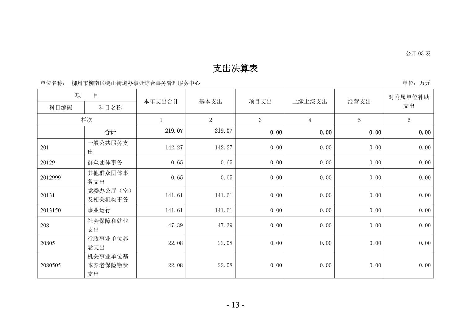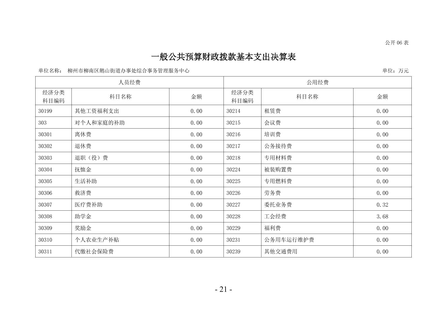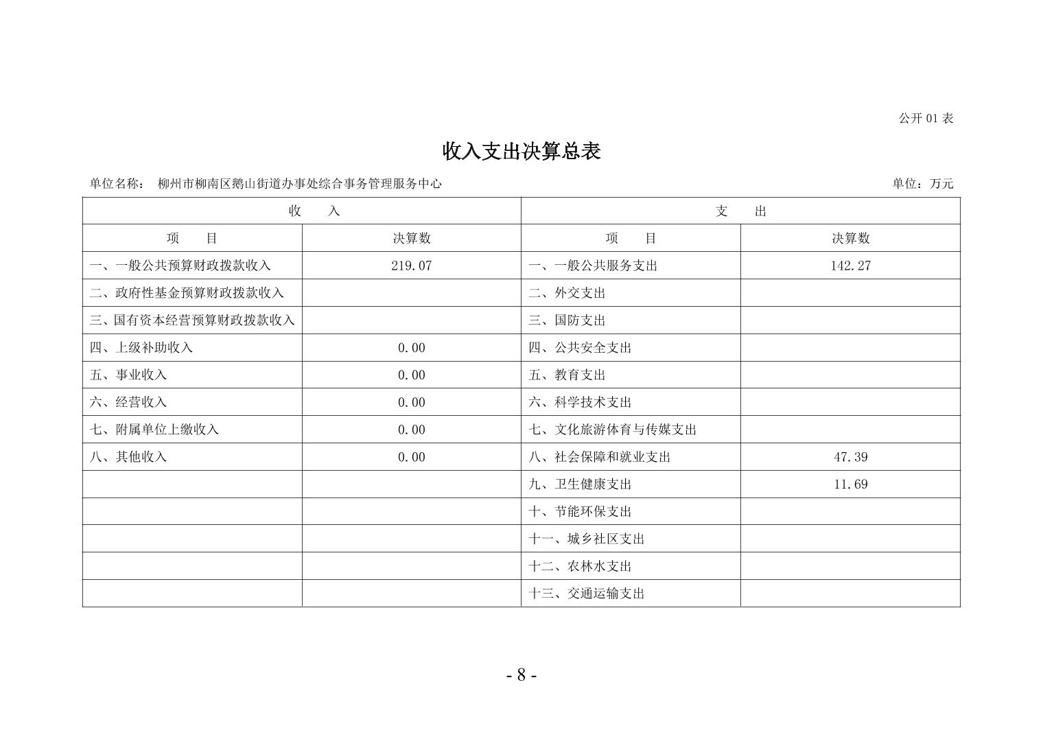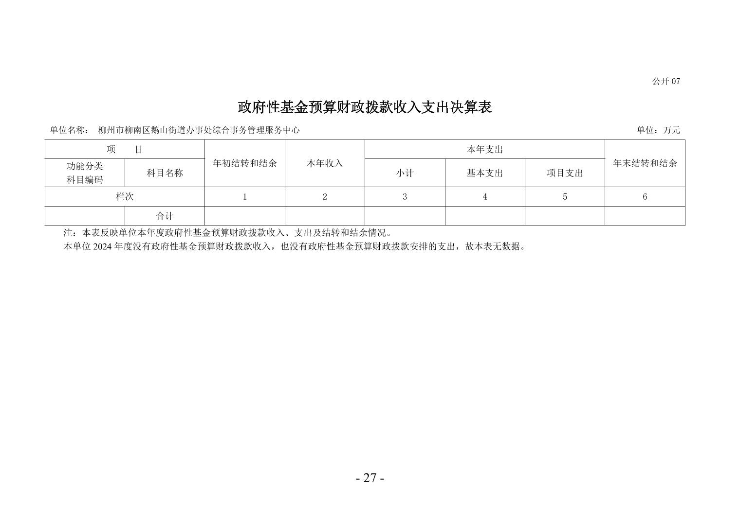 柳州市柳南區(qū)鵝山街道辦事處綜合事務管理服務中心2024年度單位決算公開