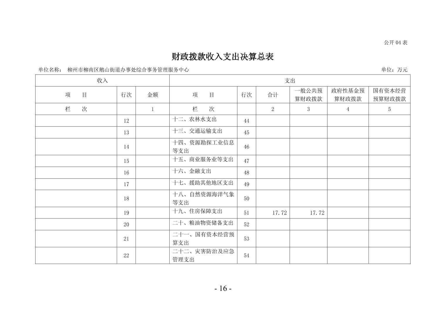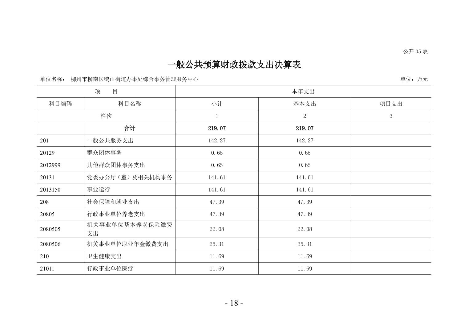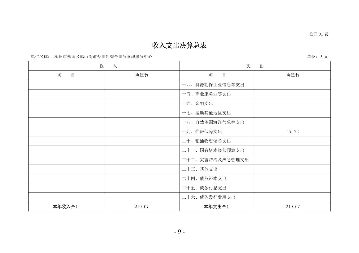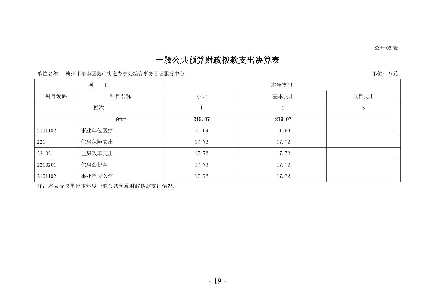 柳州市柳南區(qū)鵝山街道辦事處綜合事務管理服務中心2024年度單位決算公開