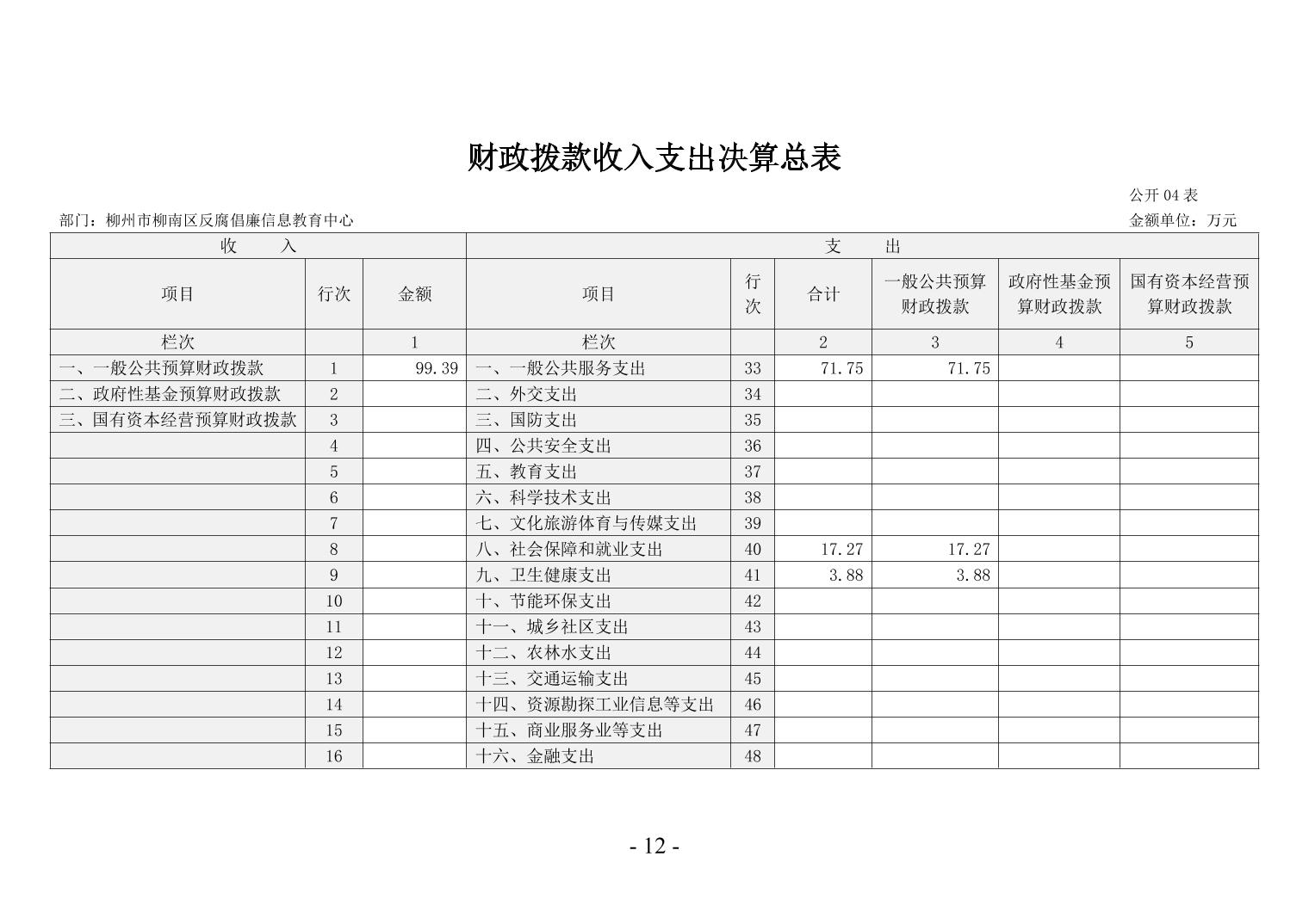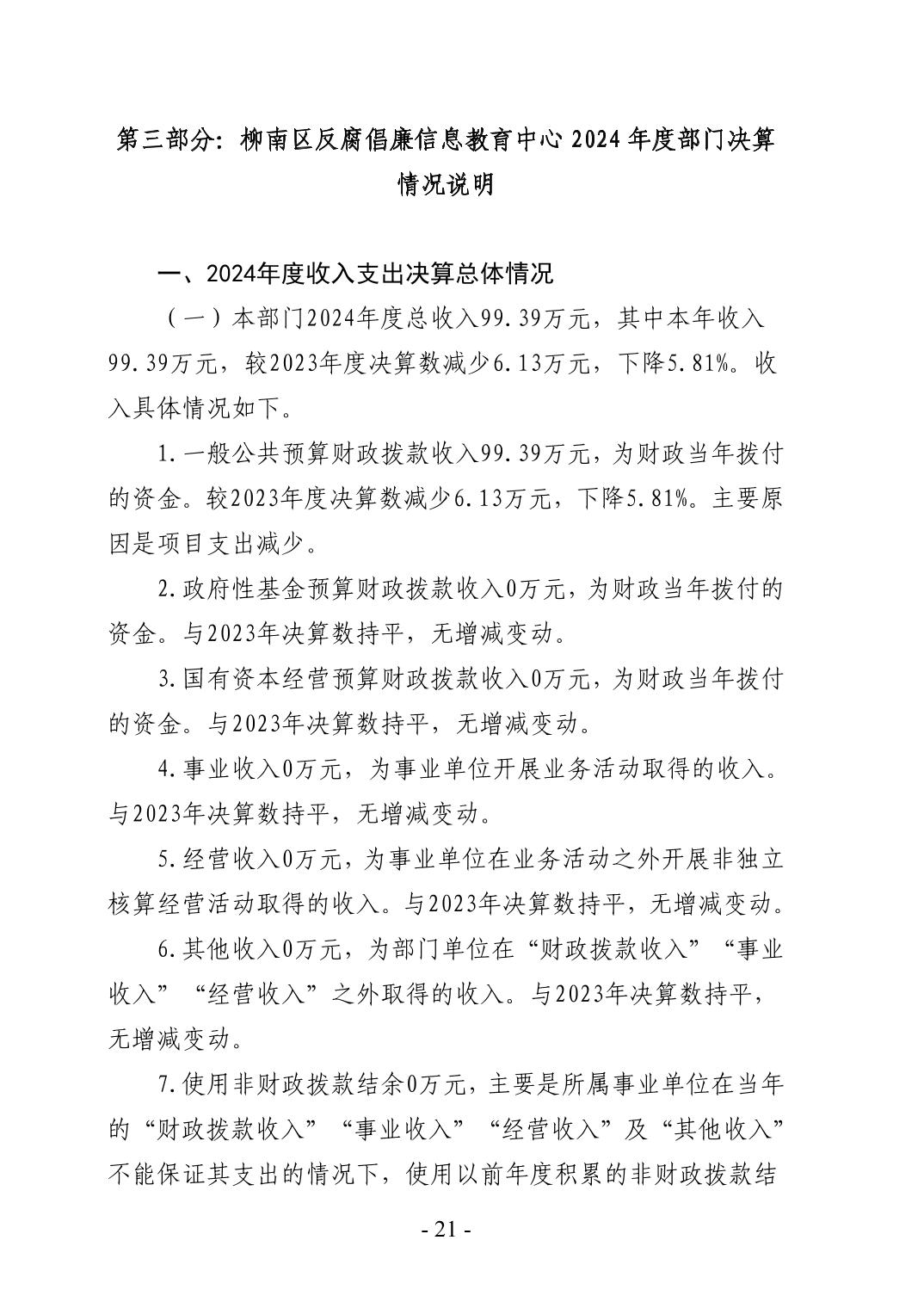 柳州市柳南區(qū)反腐倡廉信息教育中心2024年決算公開