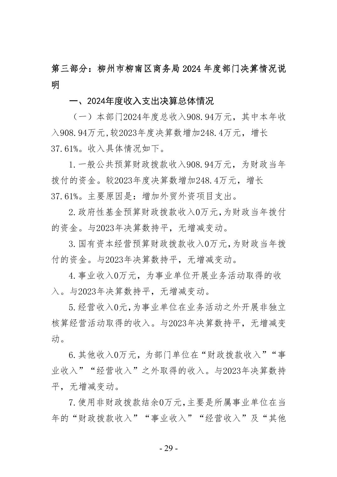 柳州市柳南區(qū)商務(wù)局2024年度部門決算公開