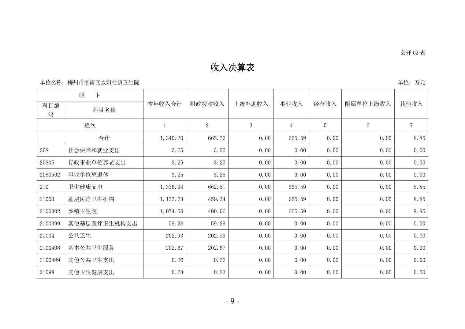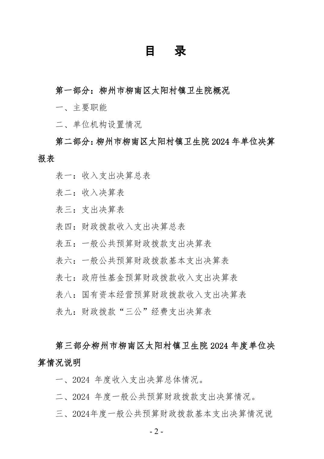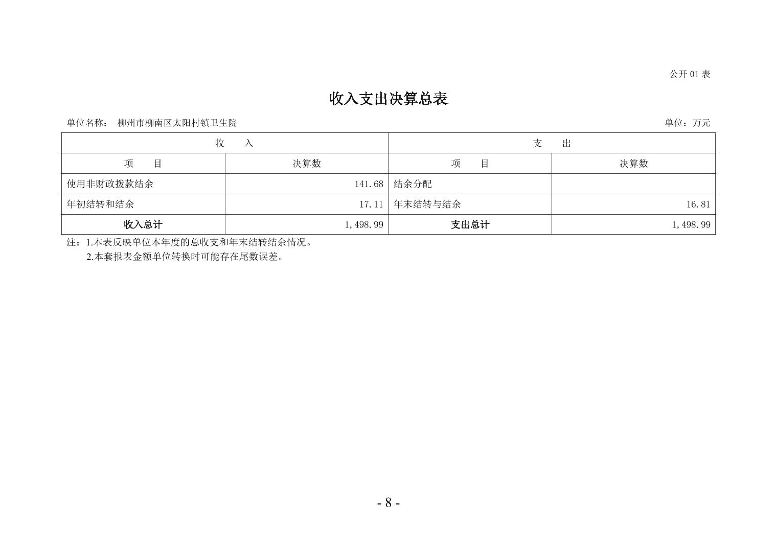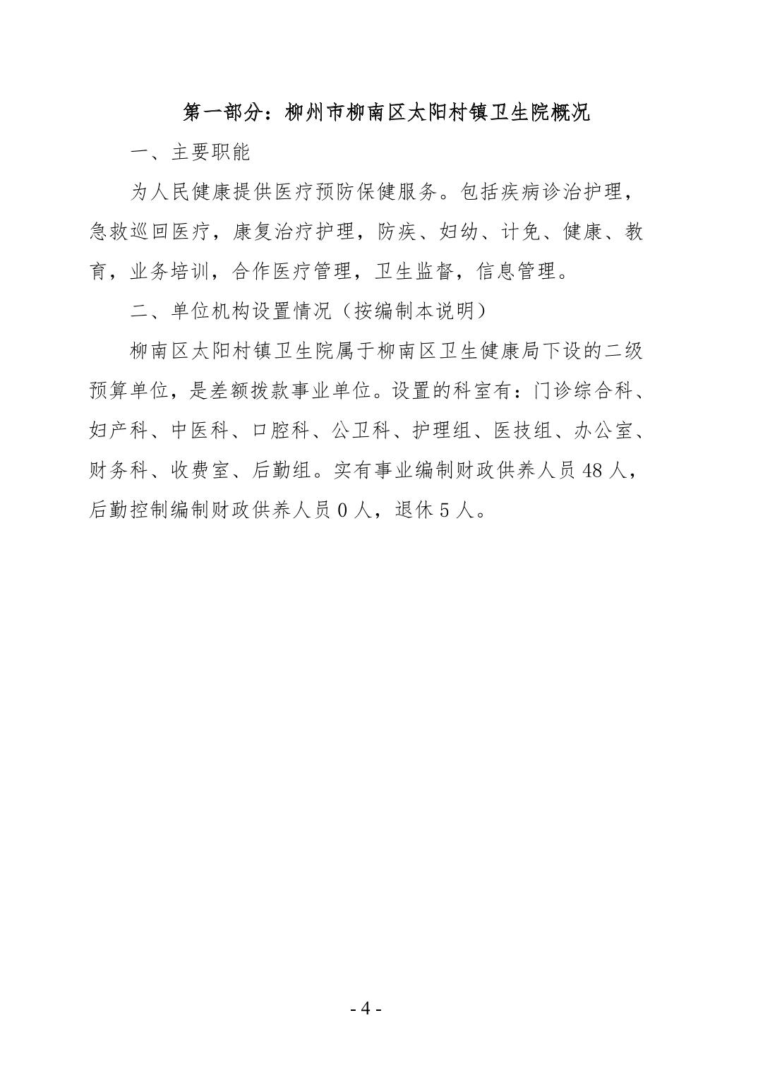 柳州市柳南區(qū)太陽(yáng)村鎮(zhèn)衛(wèi)生院2024年度單位決算公開(kāi)