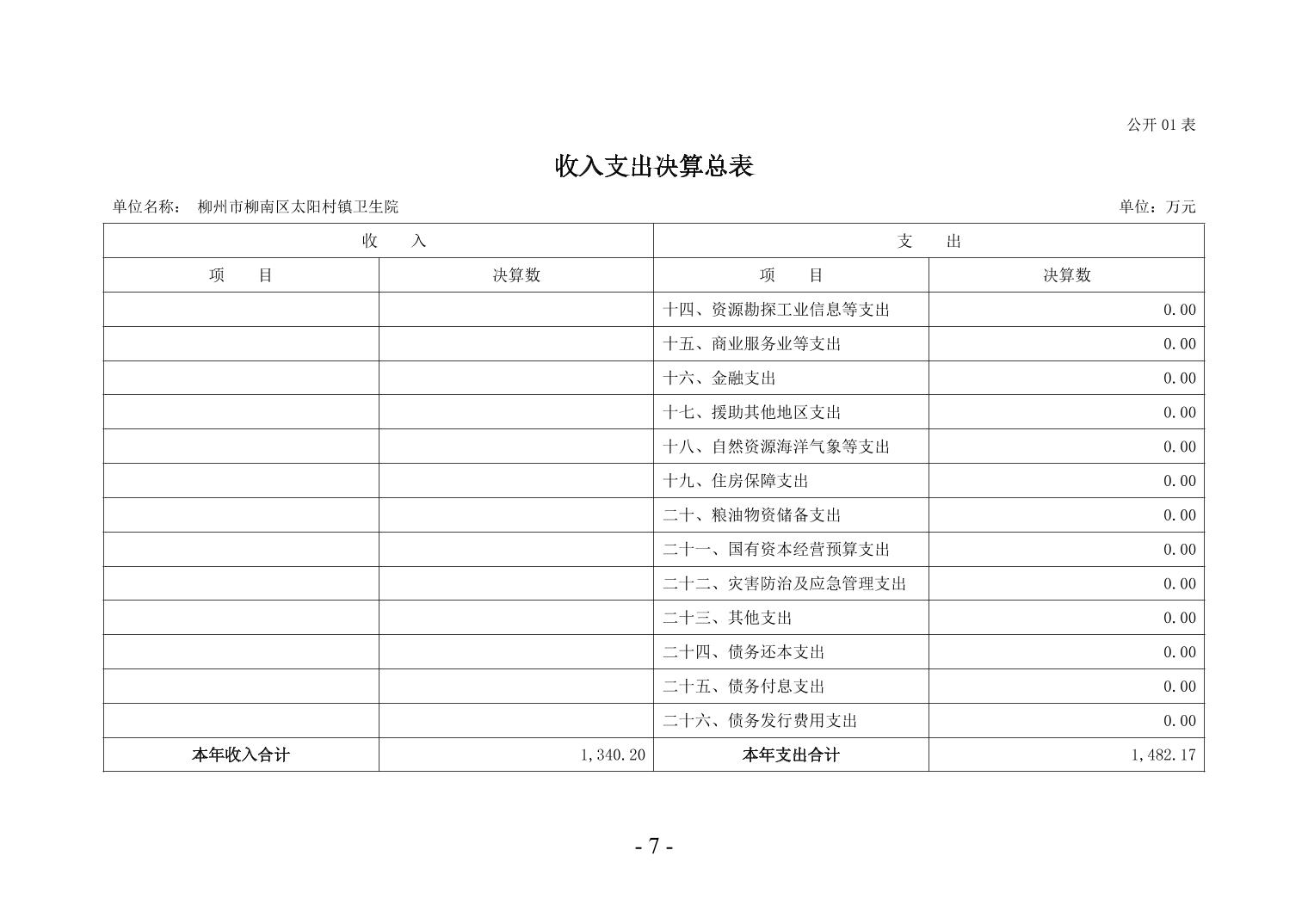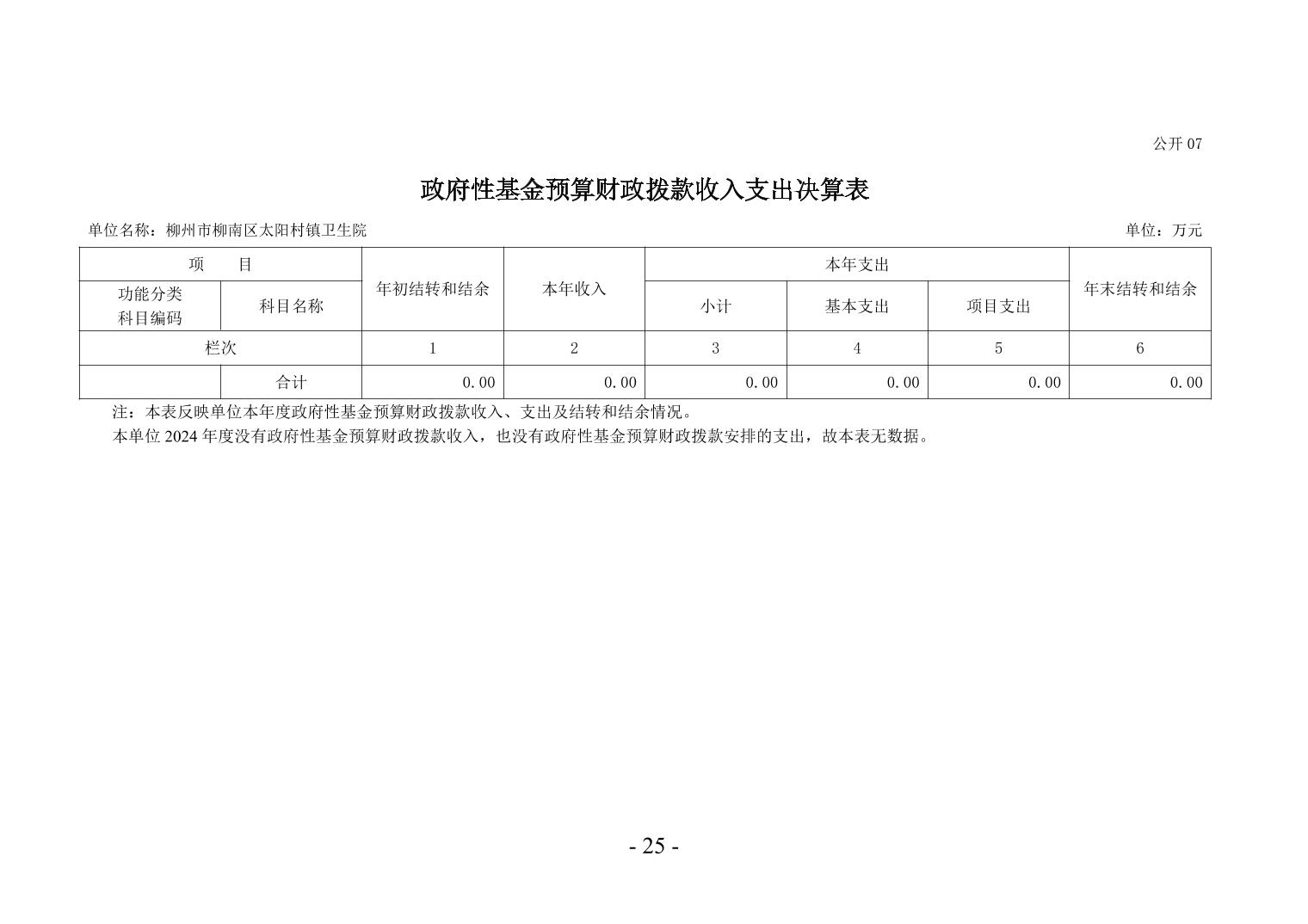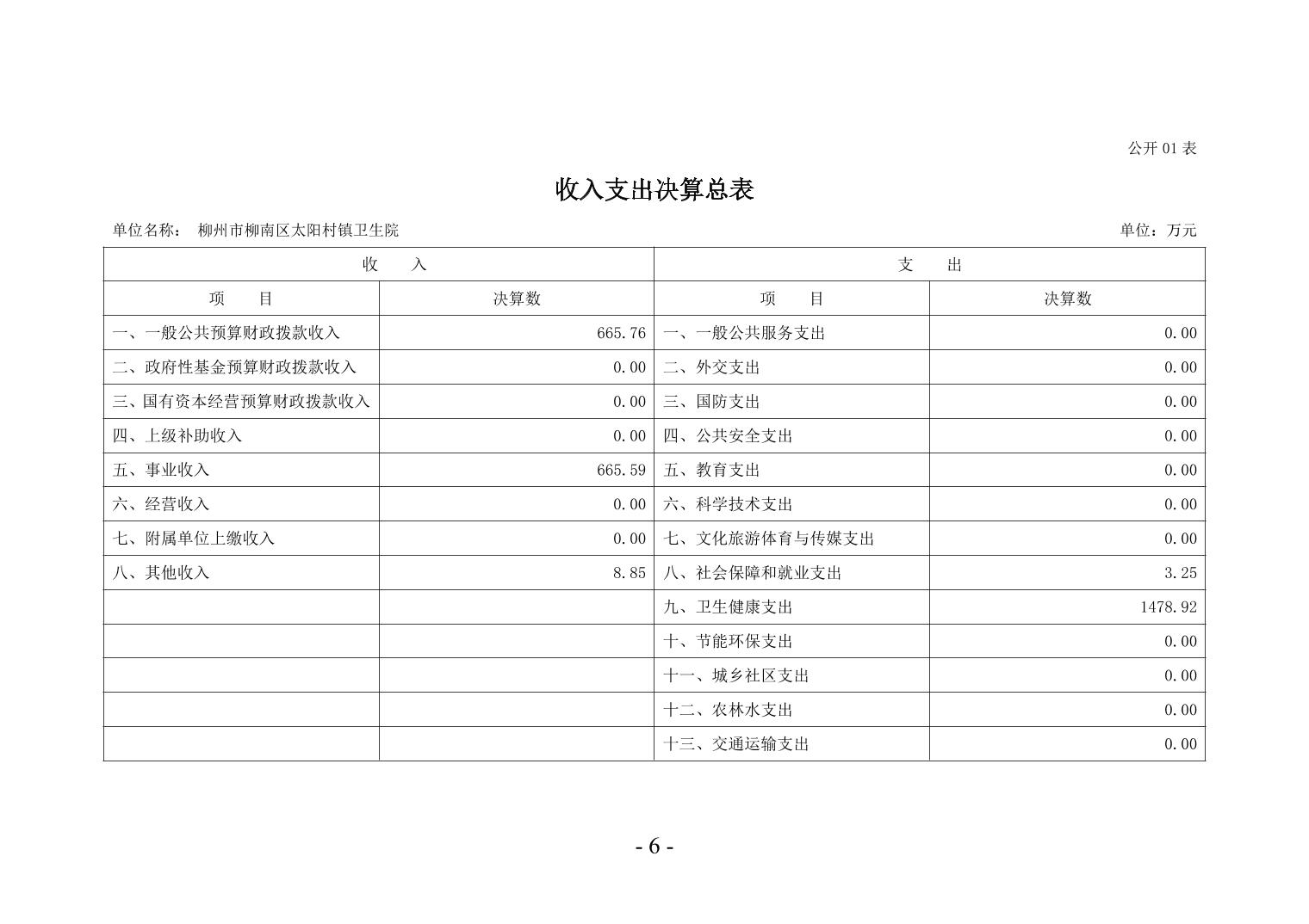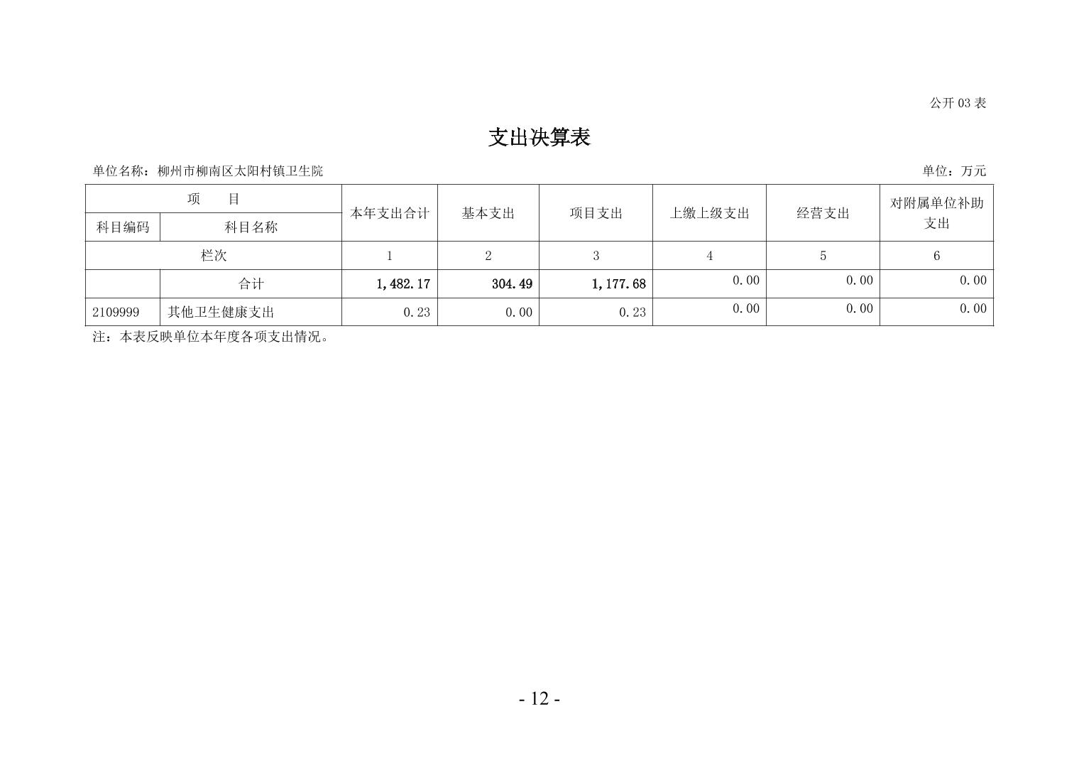 柳州市柳南區(qū)太陽(yáng)村鎮(zhèn)衛(wèi)生院2024年度單位決算公開(kāi)