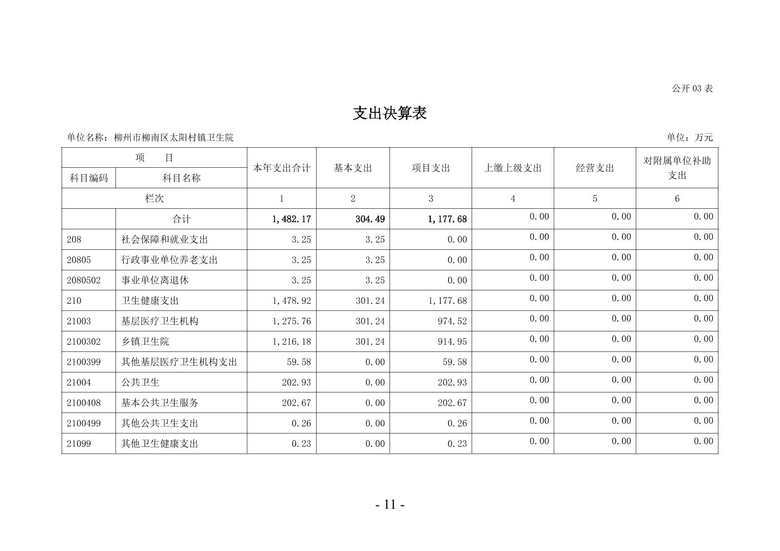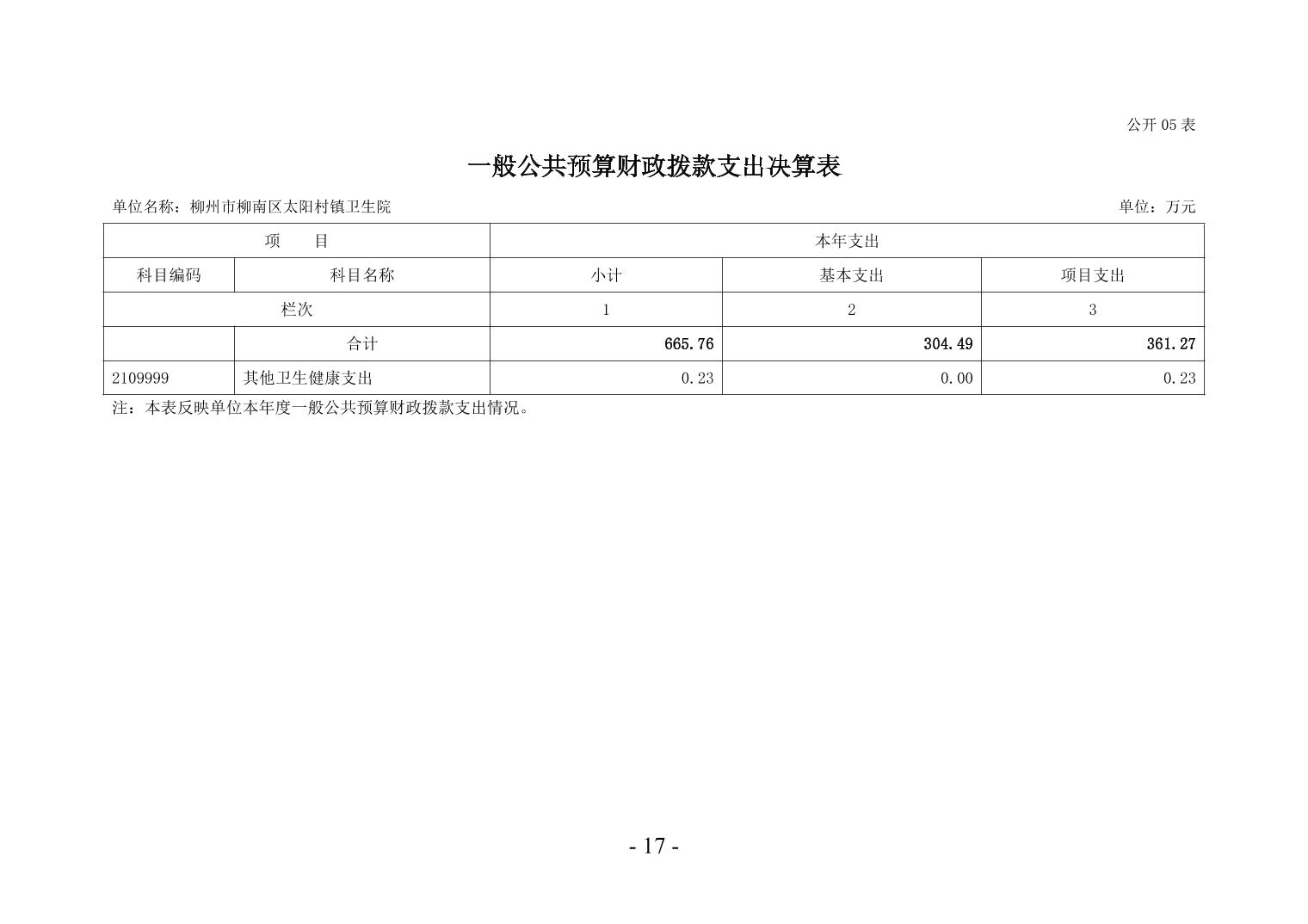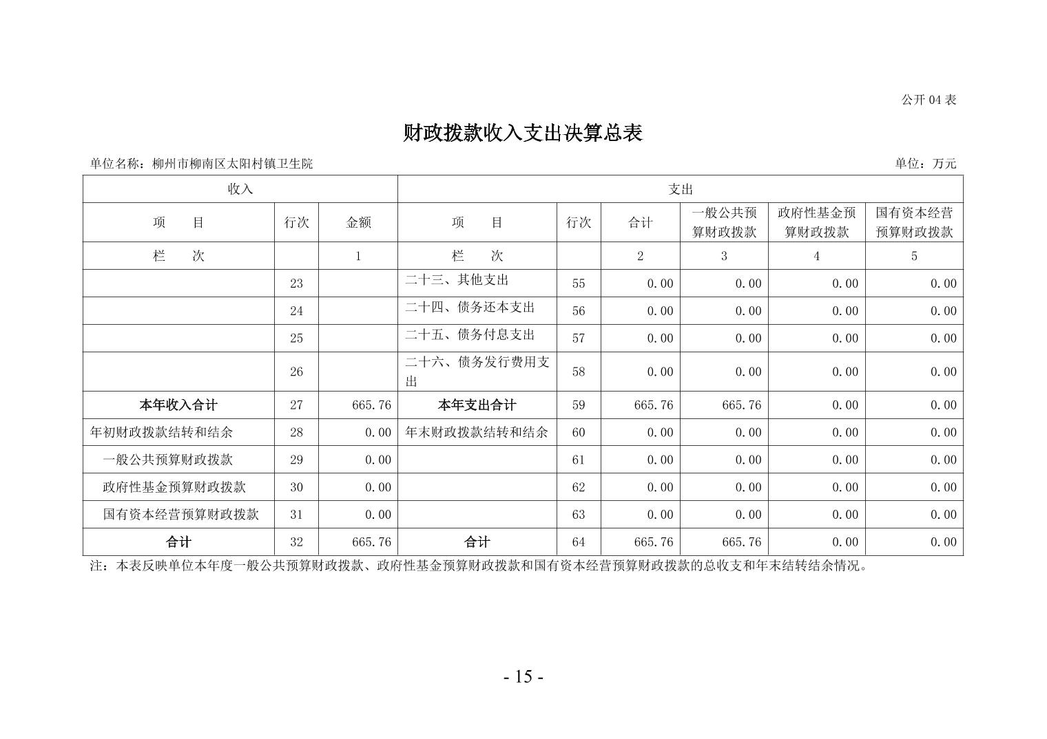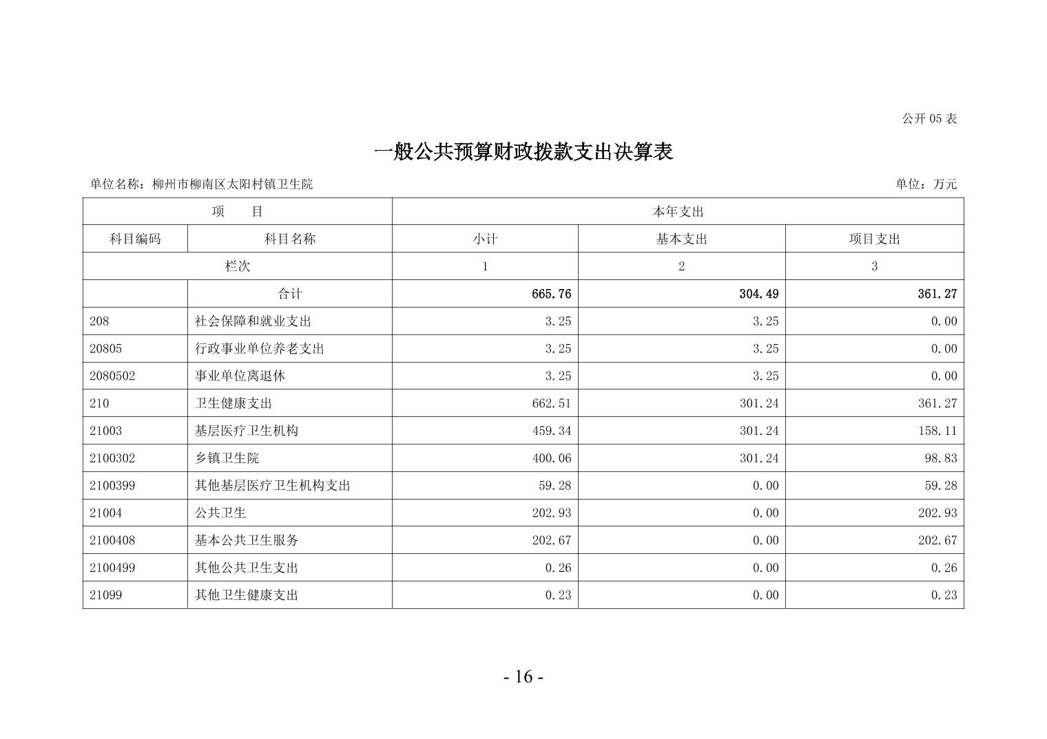 柳州市柳南區(qū)太陽(yáng)村鎮(zhèn)衛(wèi)生院2024年度單位決算公開(kāi)