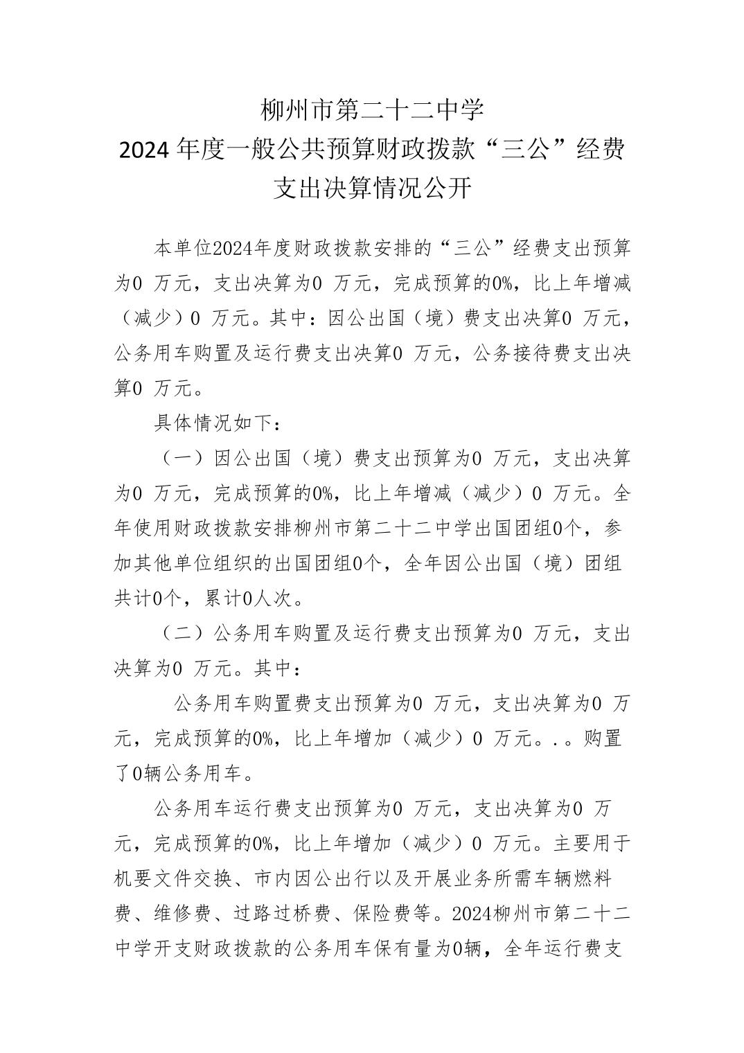 柳州市第二十二中學2024年度一般公共預算財政撥款“三公”經(jīng)費支出決算情況公開
