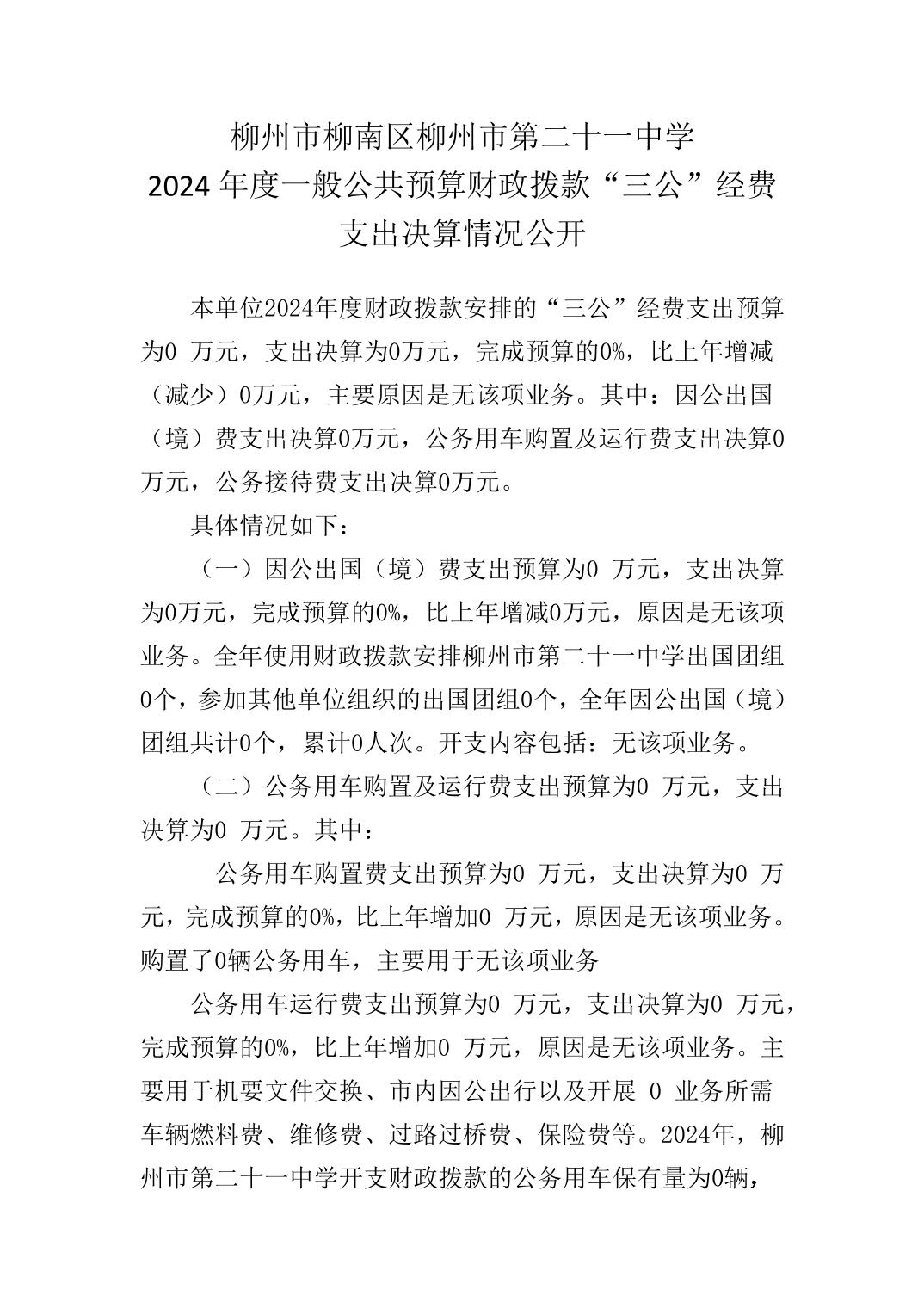 柳州市柳南區(qū)柳州市第二十一中學(xué)2024年度一般公共預(yù)算財政撥款“三公”經(jīng)費支出決算情況公開(二層單位)(1)